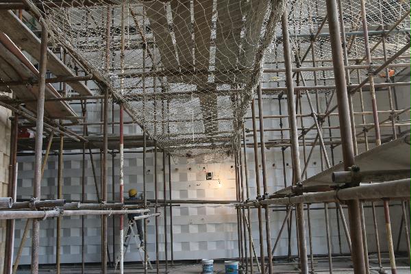 2、休息厅墙面施工已完成80%,随后将对吊顶工程、墙面涂料粉刷进行施工。